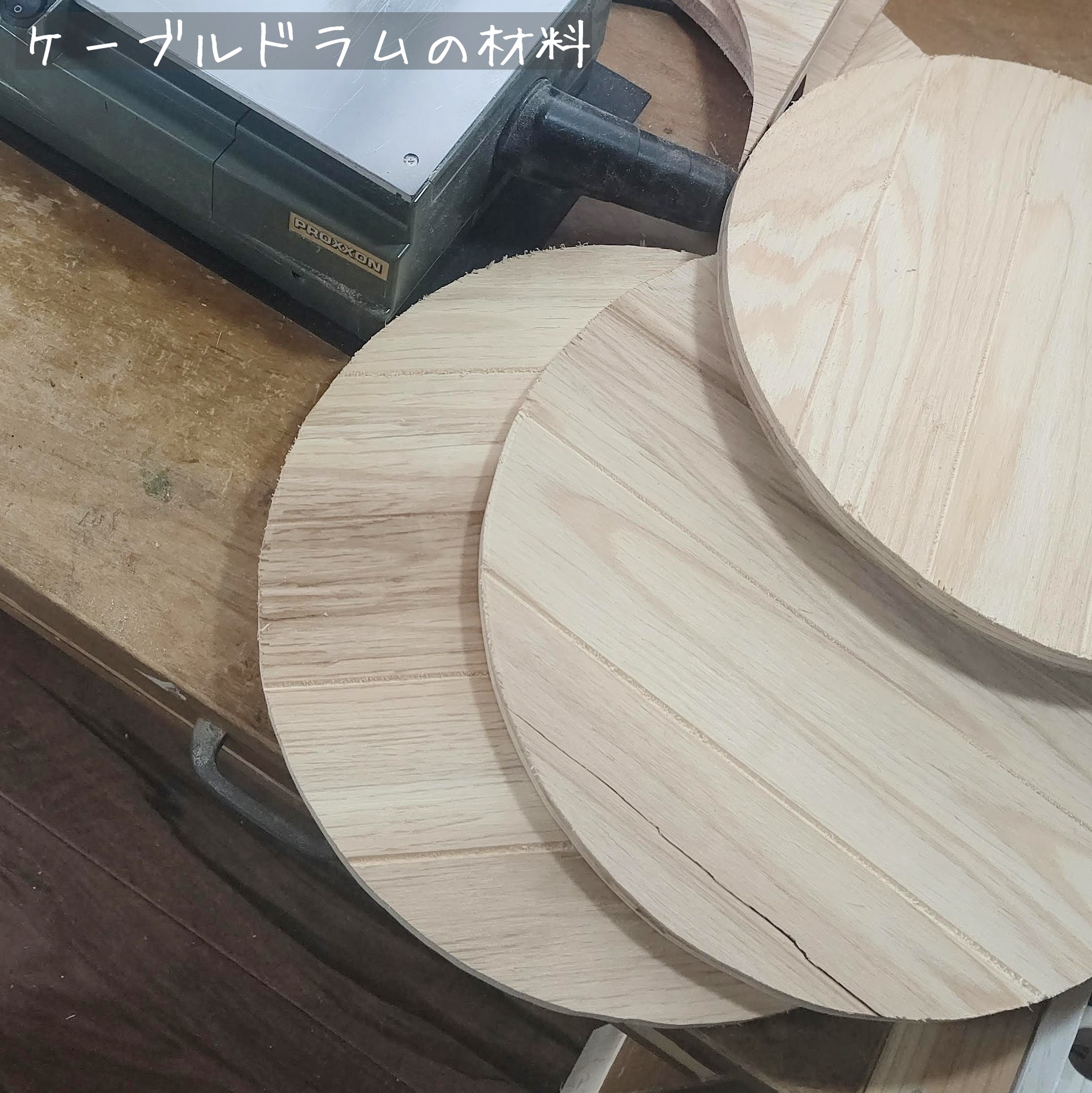 気軽にお家に置けるサイズ(直径30㎝)のケーブルドラム作りです。